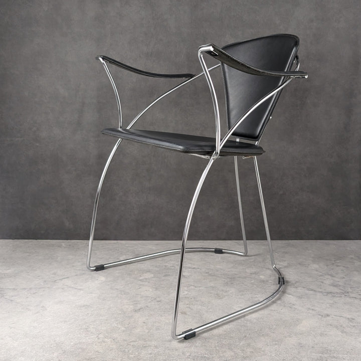 TWO | Italian Modernist Chrome and Leather Dining Chairs